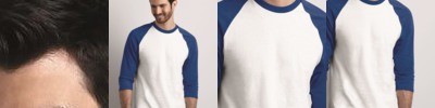 - Contrast color set-in collar and three-quarter length raglan sleeves