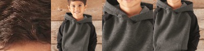 - Contrast melange fleece on hood, shoulders, and sleeves